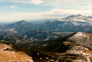Estes Park and Longs Peak from Mummy Mt (3/15/95).