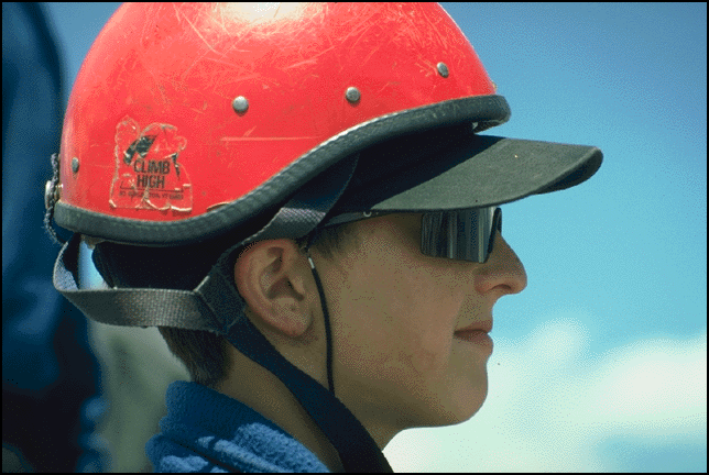 partner Brett wearing a red climbing helmet.