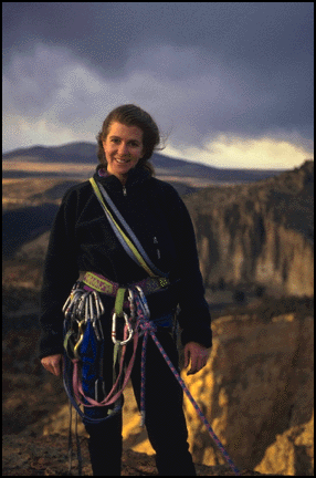 climbing partner Amy on top of the Monkey's Face route.