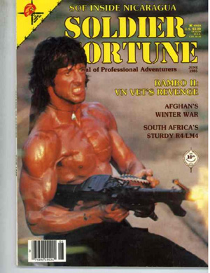 Cover model for Soldier of Fortune Magazine with Hollywood legends - Arnold Schwarzenegger and Sylvester Stallone.