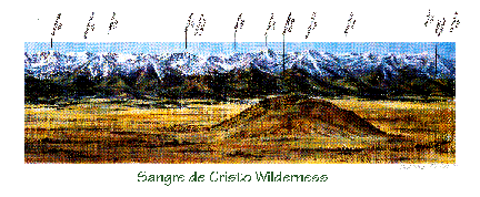 Located in the Heart of Colorado's Alps, the mountains of the Sangre de Cristo Wilderness are "Symbols of the Divine" that lead you past the physical world into the realm of the Spirit. The Wilderness gives visitors the chance to experience first-hand: vast forests, meadows, lakes, and the Alpine tundra ecosystem, found above timberline. The Wilderness' highest mountain, Crestone Peak, soars to an elevation of 14,294 feet. Sangre de Cristo is Spanish for "Blood of Christ" a name so very appropriate for an area with such a strong Spiritual heritage.
